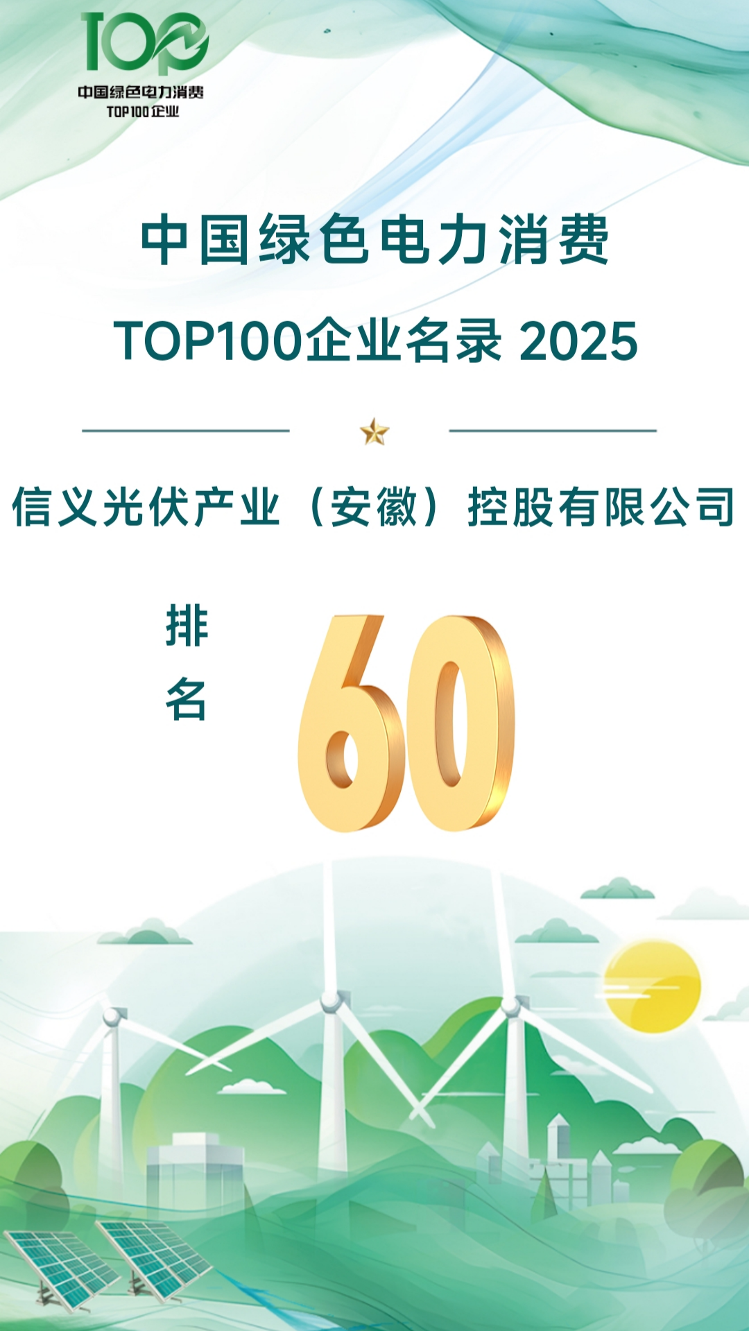 信義光能旗下公司入選中國綠色電力消費TOP100榜單,以綠色實踐賦能雙碳目標